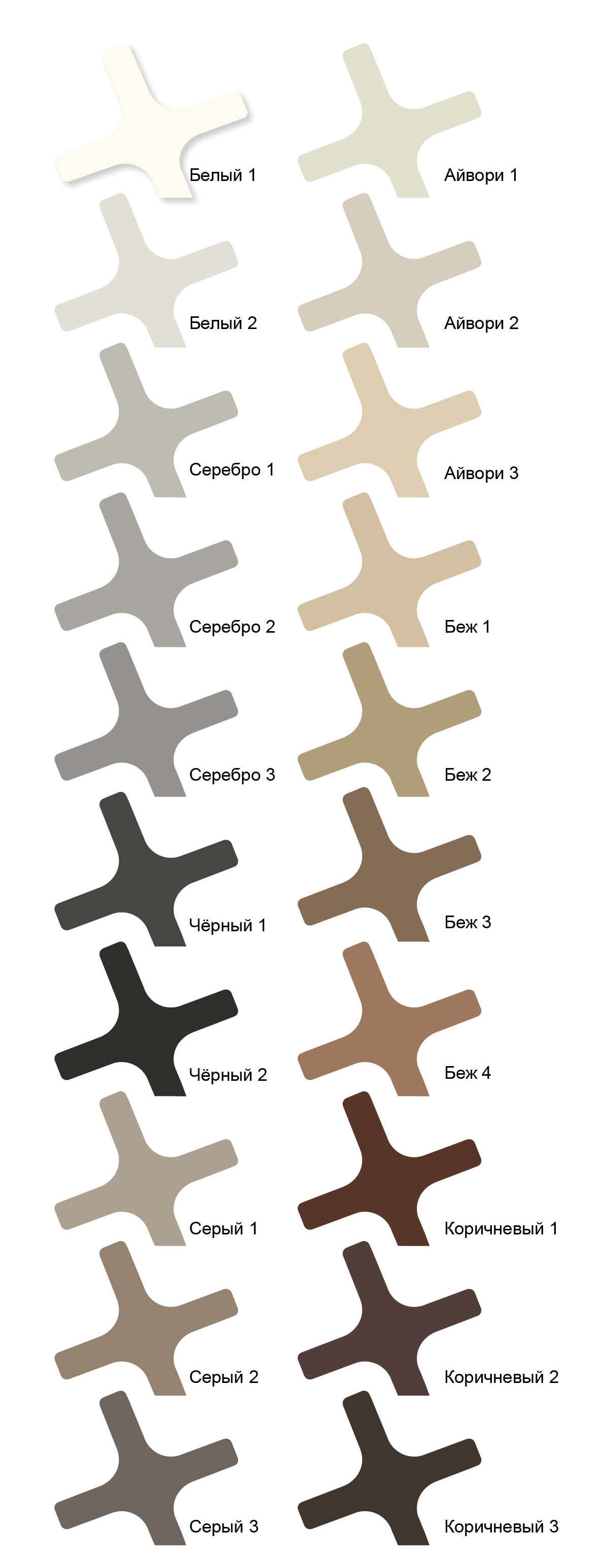 white, silver, black, grey, ivory, beige, brown